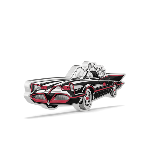 Step back into the swinging ’60s with one of the coolest rides in comic book history. The iconic 1966 BATMOBILE™ is engraved on 1oz of 999 pure silver, complete with red detailing and comic-style design on a proof finish.