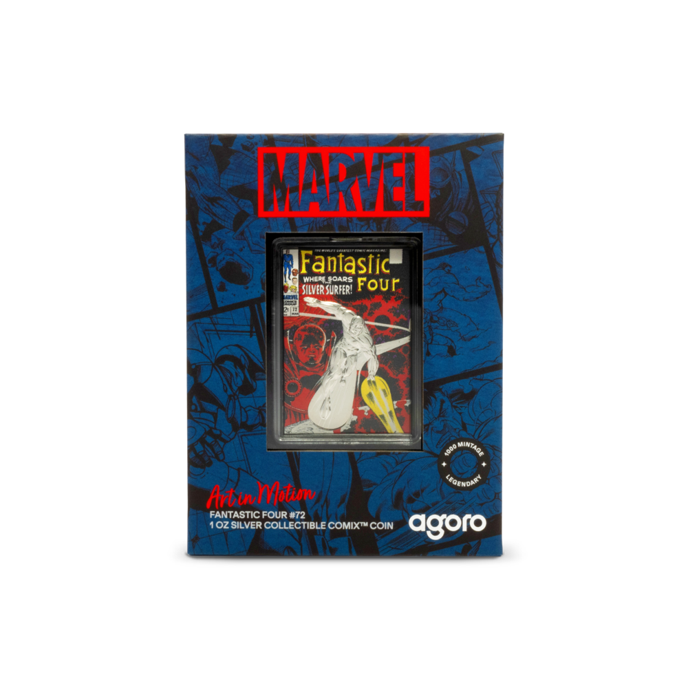 - 1oz 999 pure silver collectible featuring the full-color cover of Fantastic Four #72