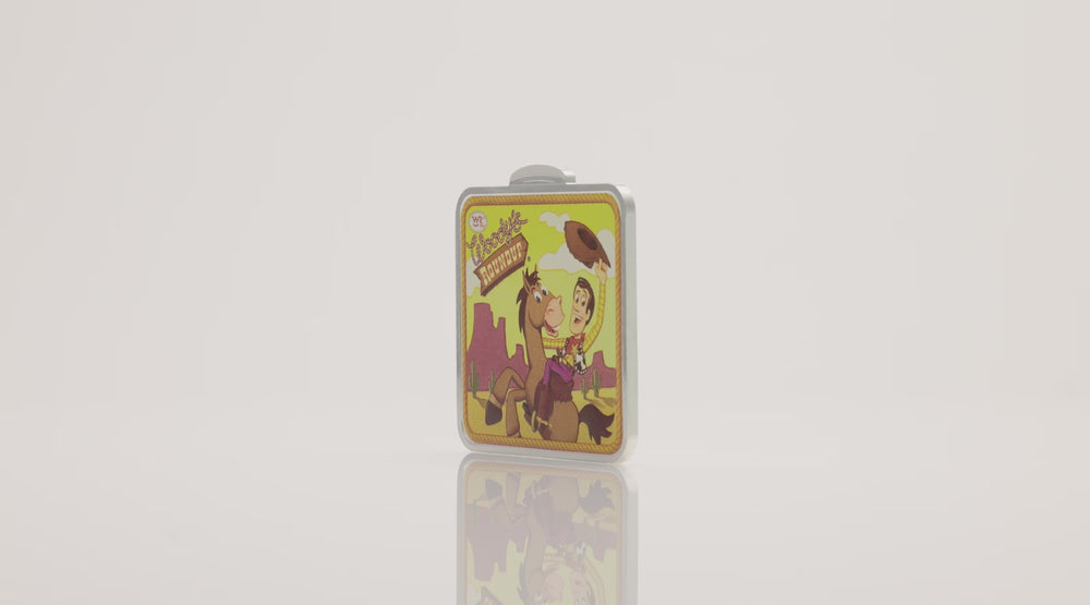 - The reverse features a design inspired by the iconic Woody’s Roundup lunchbox, capturing the spirit of Bullseye.
