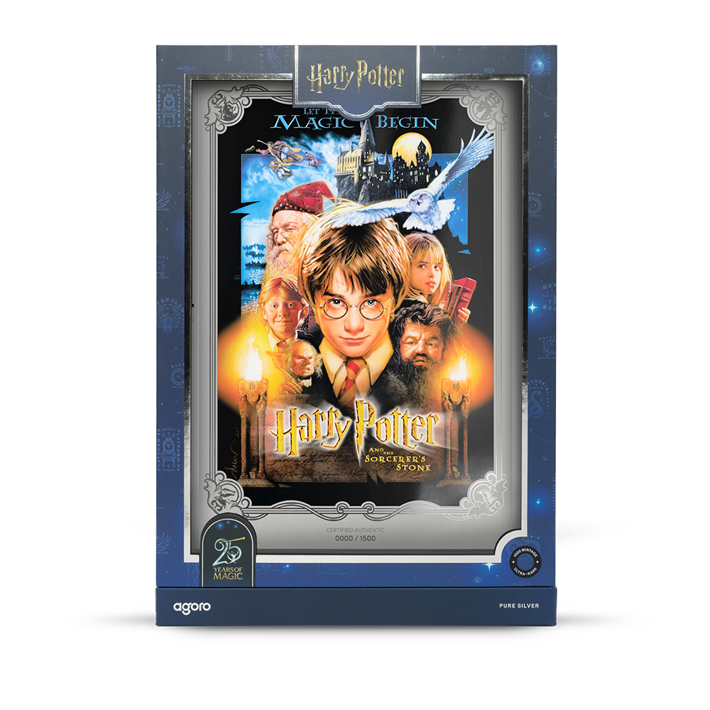 We’re celebrating 25 years of Harry Potter™ movie magic with the release of a brand new silver chapter. We’ve struck the original Harry Potter and the Sorcerer’s Stone™ movie poster in 1oz of 999 pure silver. Now you can own the original US theatrical poster artwork, exactly as it was released in 2001.