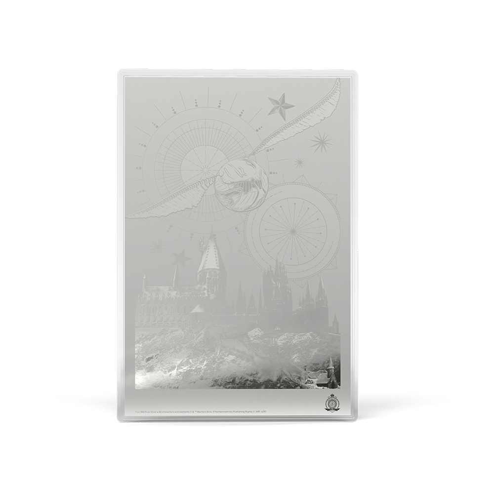- Flip the foil to find Hogwarts™ artwork sketched on silver, alongside a Golden Snitch™ soaring through the sky