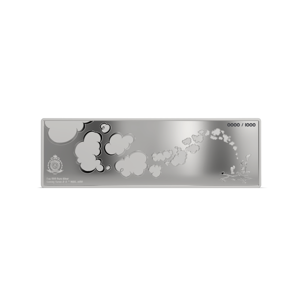 Looney Tunes madness continues with Wile E Coyote, riding a rocket, in hot pursuit of Road Runner. Their chase is struck on 1oz 999 pure silver, complemented with a metallic silver background and frosted detailing. The third and final release in our Looney Tunes Double Trouble series celebrating iconic rivalries and storylines.