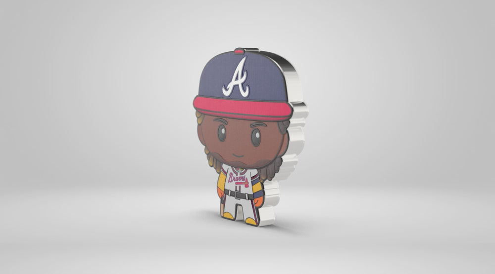 - The Chibi® Coin design uses color and relief with a mirror-finish Atlanta Braves logo on his hat.
