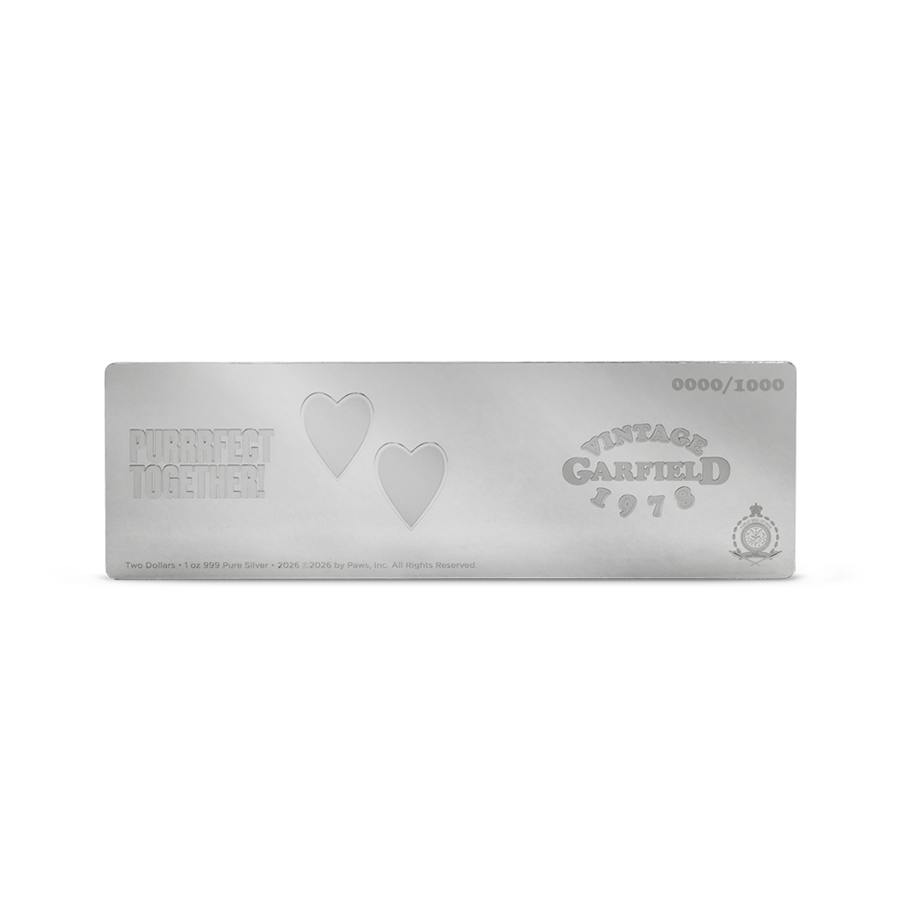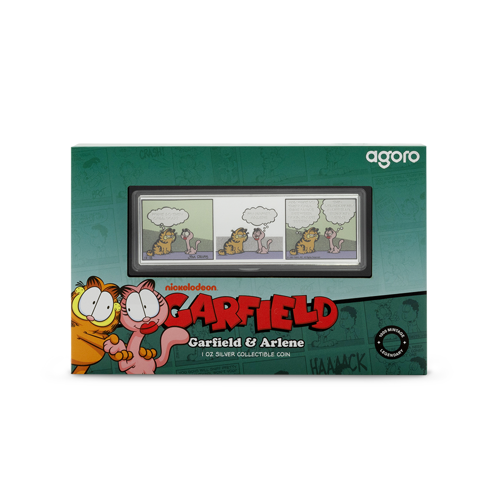 Celebrate classic Garfield romance with the fourth release in our five-part Garfield Comic Set series. This officially licensed 1oz 999 pure silver collectible recreates the memorable 1980 three-panel strip featuring Garfield and Arlene in full color.
