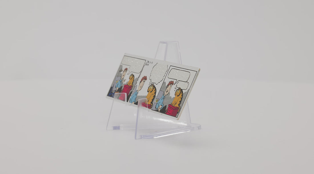 Taken from 1978, the three-panel design shows cartoonist John Arbuckle introducing himself and Garfield with the promise “Our only thought is to entertain you” — while Garfield, true to form, simply thinks “I’m hungry.”