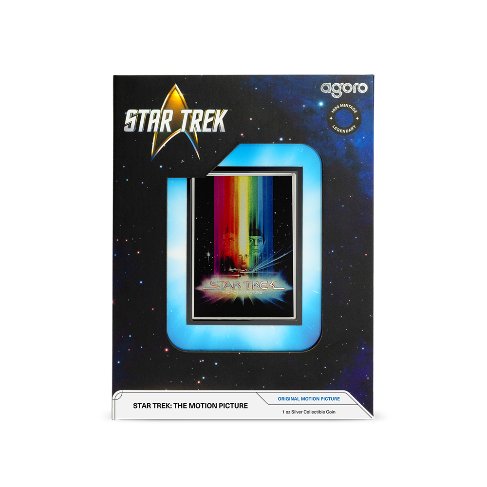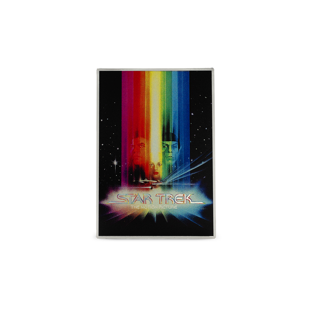 - Recreates the Star Trek: The Motion Picture (1979) poster in vibrant color with frosted silver detail, struck on 1oz of 999 pure silver