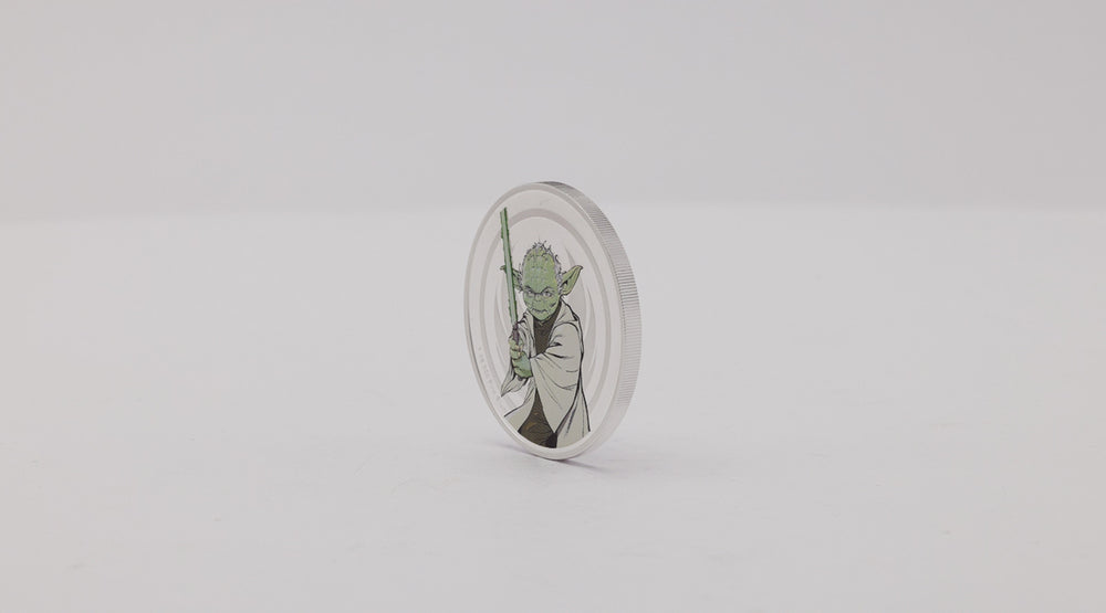Officially licensed, “Skirmish in the Senate” is now reimagined on 1oz 999 pure silver. Taking place in 19 BBY, this ferocious Lightsaber™ duel sees Yoda attempt to stop the revealed Sith Lord from gaining control of the galaxy. Their Force powers are captured in this medallion, as the fifth addition in the series.