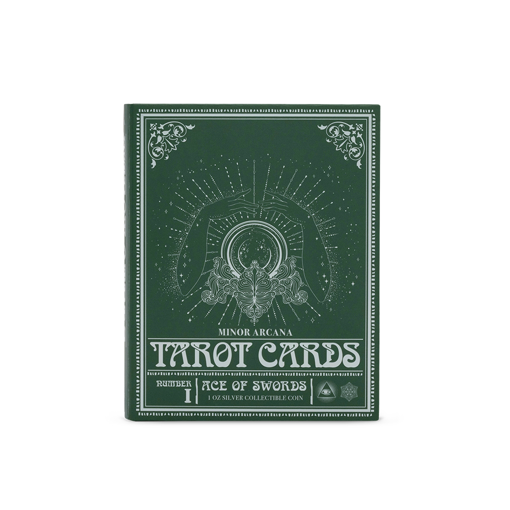 Enter the realm of ideas, clarity and mental victory with the Ace of Swords, the next chapter in Agoro’s Tarot Minor Arcana Series, exquisitely struck in 1 oz of 999 pure silver. From a cloud of luminous silver-white mist, a hand emerges gripping the upright sword of insight. At its tip rests a regal crown. In the corner, a sharp light-air-blue triangle marks the alchemical symbol for Air, the elemental force of the Swords suit.