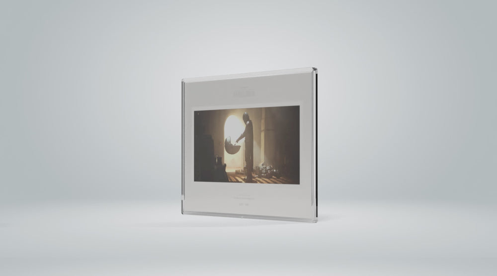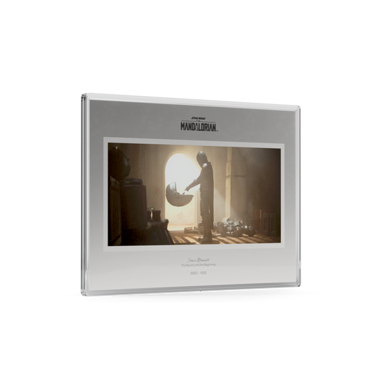- Features full-color landscape concept art of the Mandalorian seeing Grogu for the very first time, framed in a silver poster-style border